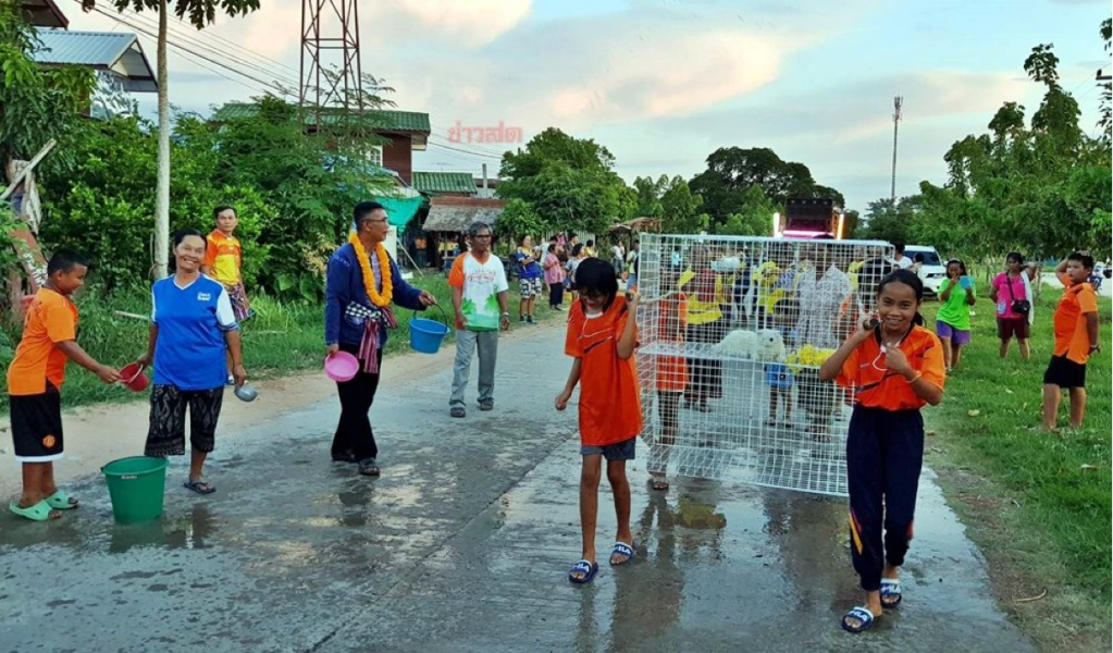 As this New Year is based on the solar calendar, it falls around April each year, coinciding with the start of the hot and dry season in Indochina. In Northeastern Thailand, there’s a ritual called “แห่นาง แมว” or “Hae Nang Maew”, which people would throw water at cats while they are paraded around town in cages to force them to use their mystical powers to make it rain again, which not only drenches the cat but also the parade participants. This tradition, rather than Holi, is another theory for the origin of the water wars associated with Songkran.